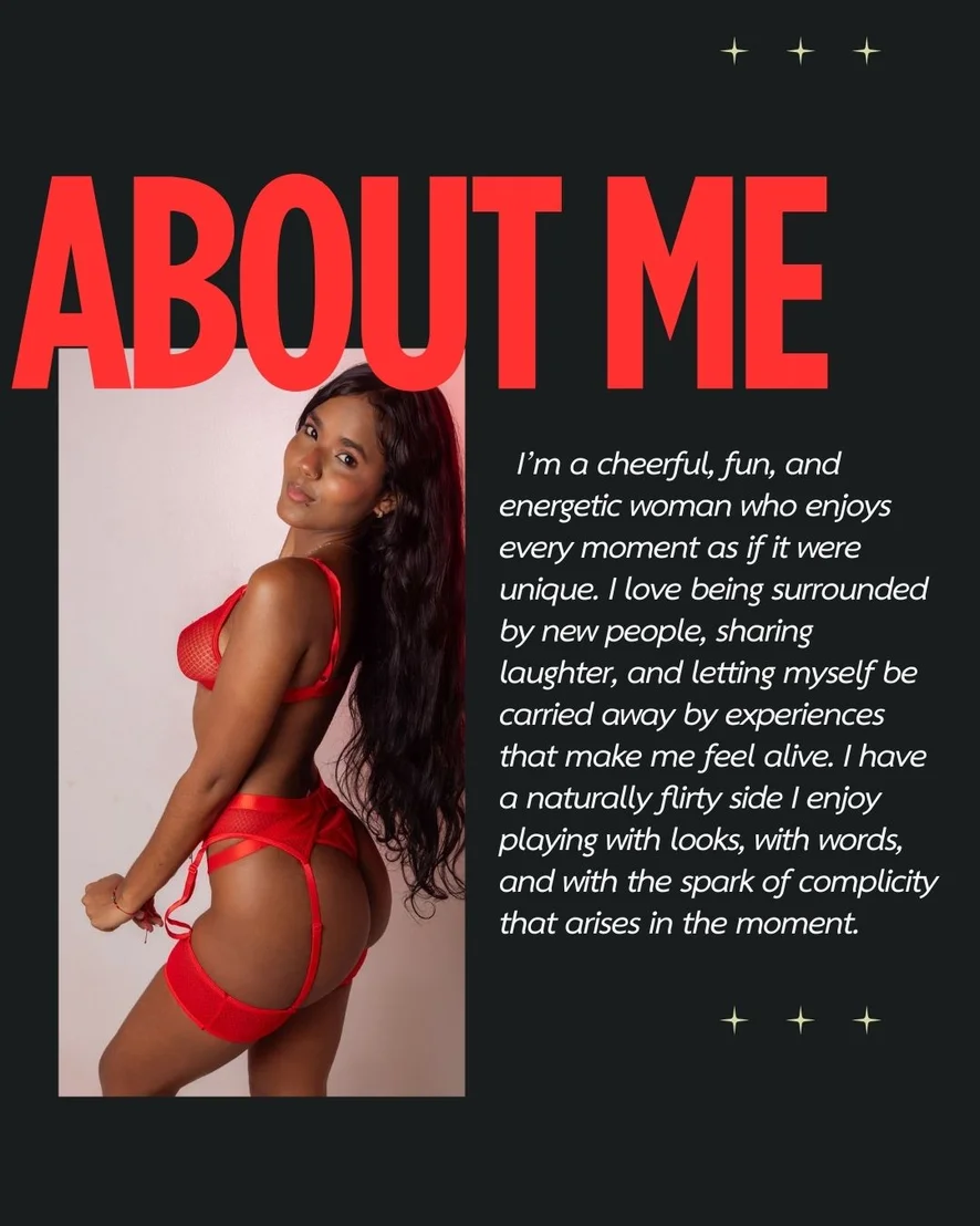 I’m a slim, dark-skinned woman with curves that turn heads. Calm, yet with a natural sensuality that doesn’t go unnoticed